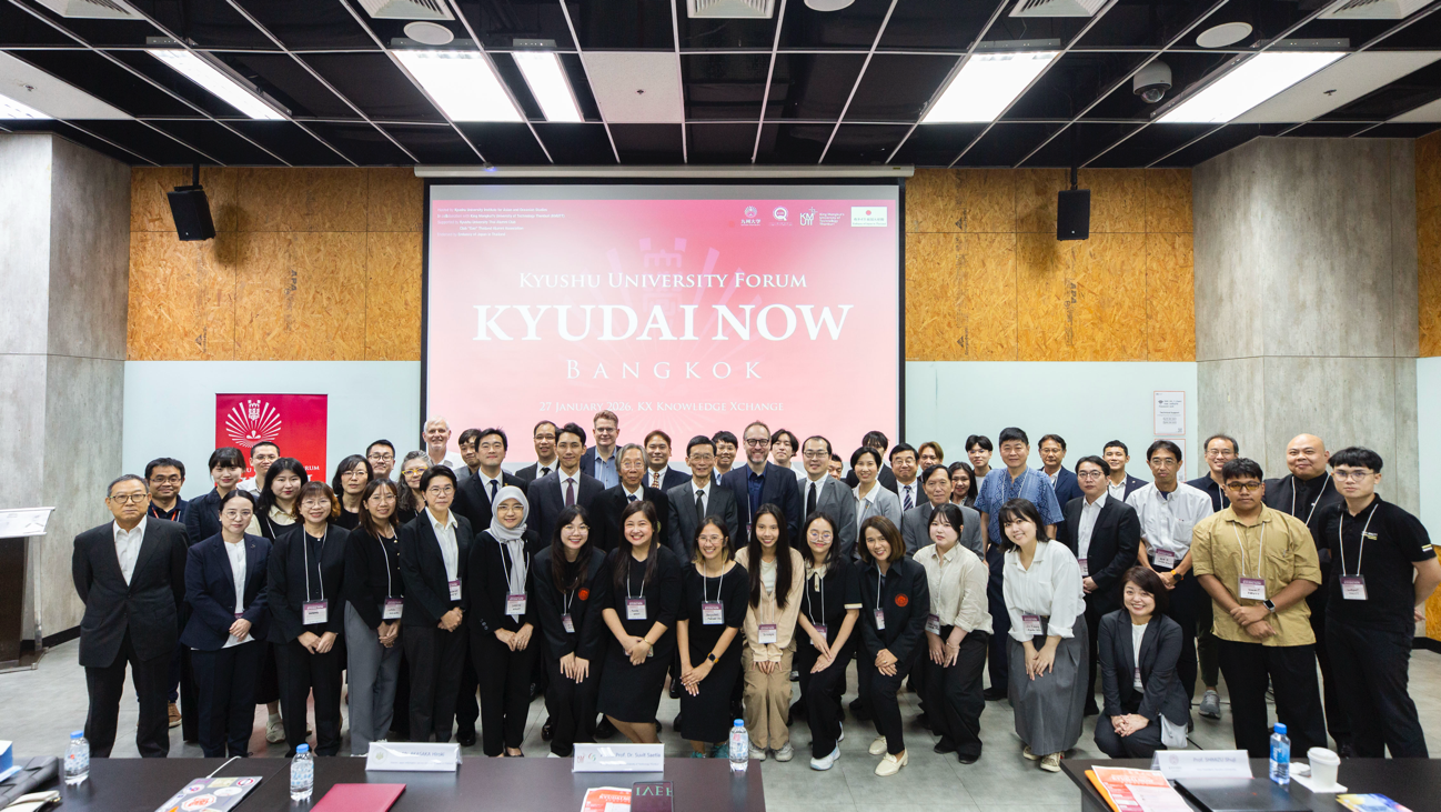 On Tuesday, January 27, 2026, Kyushu University held the forum “KYUDAI NOW Bangkok” in Bangkok, the capital of Thailand. Organized by the Kyushu University Institute for Asian and Oceanian Studies (hereafter Q-AOS), this forum marked the third time the event has been held in Thailand, following those in 2023 and 2024. This year’s forum was co-organized in collaboration with King Mongkut’s University of Technology Thonburi (KMUTT). The event was supported and endorsed by the Embassy of Japan in Thailand, the Kyushu University Thai Alumni Club, the Club “Gao” Thailand Alumni Association, and the JSPS Bangkok Research Center. Nearly 100 participants attended, including representatives from Thai universities and research institutions, including KMUTT, industry partners, Kyushu University alumni, and former students who had studied in Japan.