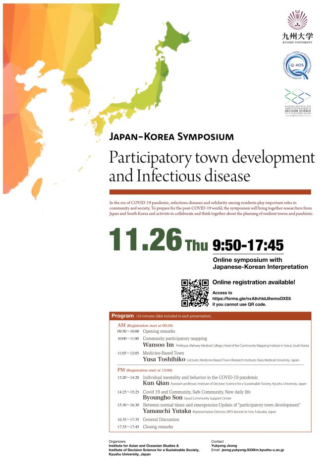 アジア・オセアニア研究教育機構/持続可能な社会のための決断科学センターイベント「日韓シンポジウムー参加型まちづくりと伝染病」