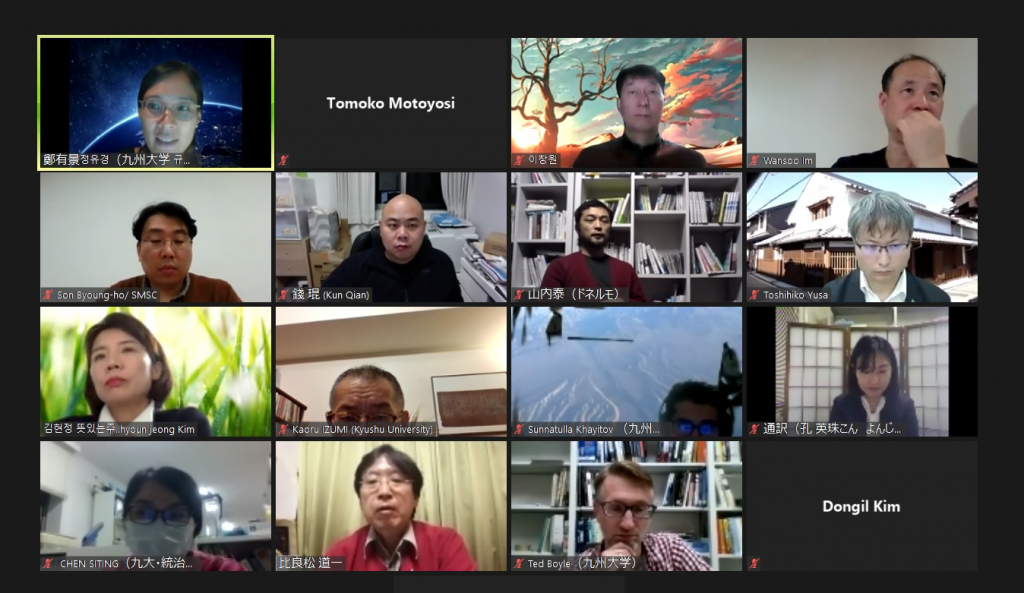 2020年11月26日(木)に九州大学アジア・オセアニア研究教育機構と持続可能な社会のための決断科学センターが主催する日韓シンポジウム「参加型まちづくりと伝染病」を遠隔システムを用いオンラインにて開催いたしました。前例のないコロナ禍の中で、人と人とのコミュニケーションと交流、対話などを重視する参加型まちづくりの現場においてもかつてない厳しい状況に直面しています。そこで、日本と韓国の研究者やまちづくり現場の活動家を招き、コロナ前後の社会、まちづくり現場での話など、その状況や今後の課題などに関して議論を深めました。シンポジウムは出水薫教授(持続可能な社会のための決断科学センター長ならびにアジア・オセアニア研究教育機構 都市クラスターガバナンスモジュール長)による挨拶で開会し、イム・ワンス氏(Meharry Medical College・教授)、遊佐敏彦(奈良県立医科大学MBT研究所・講師)、錢琨氏(九州大学持続可能な社会のための決断科学センター・助教)、ソン・ビョンホ氏(ソウル市マウル共同体総合支援センター ・政策TFチーム長)、山内泰氏(NPO法人 ドネルモ 代表理事)に報告していただきました。