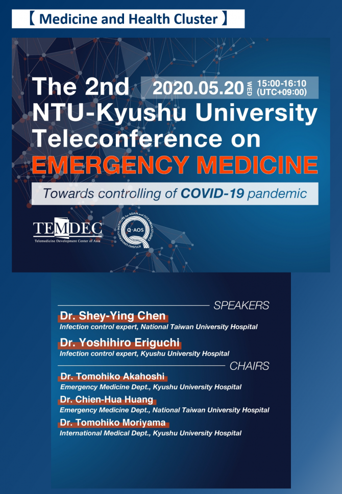 アジアにおけるCOVID-19への取組み~国立台湾大学と九州大学の遠隔カンファレンス②「Towards controlling of COVID-19 pandemic」(医療・健康クラスター)~