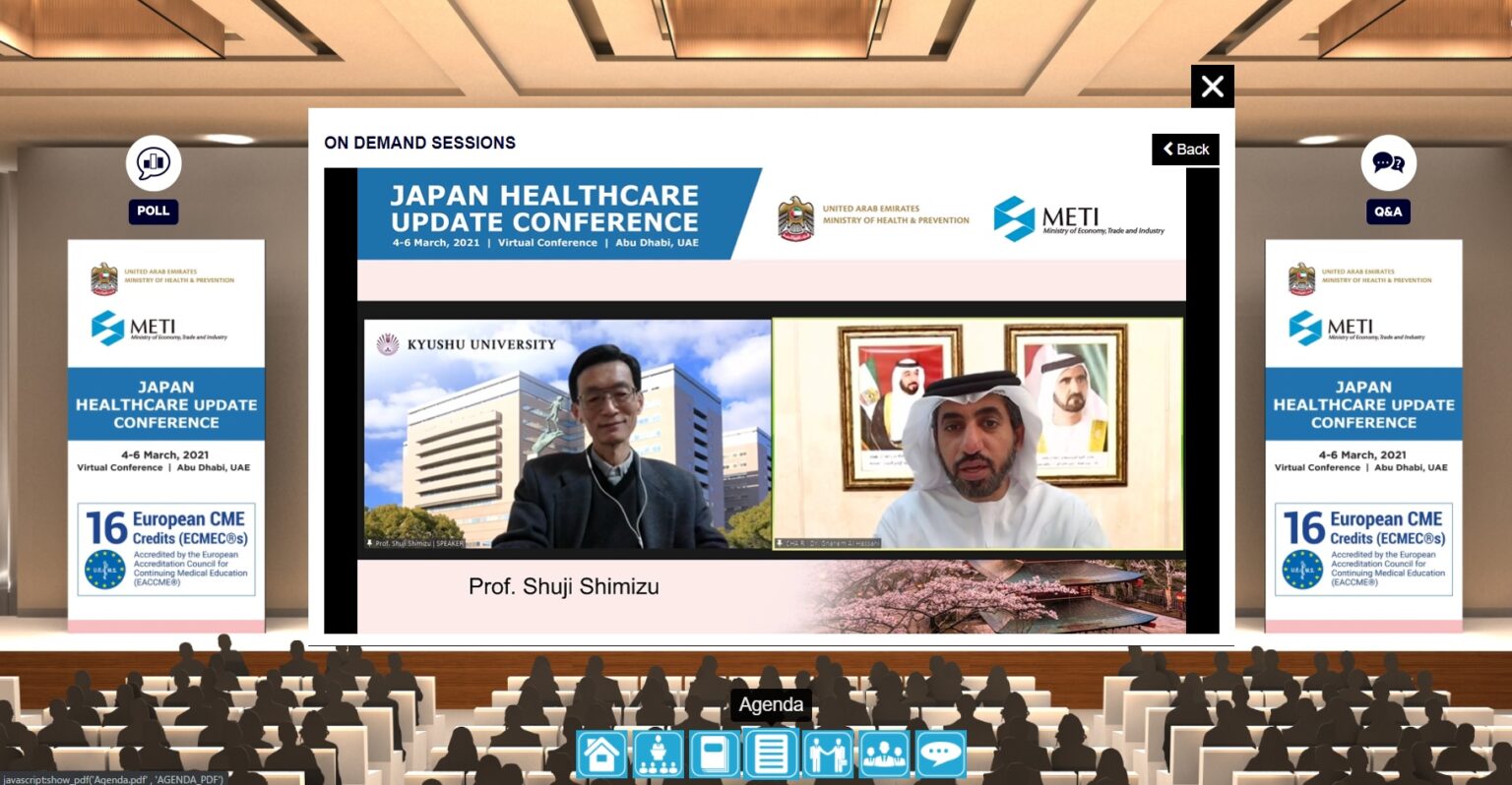 令和3年3月4日から6日まで、アラブ首長国連邦のアブダビにて、「Japan Healthcare Update Conference」が開催されました。本プログラムは、再生医療、腫瘍学、ロボット工学、AI、遺伝子治療など多岐に渡る分野から構成され、日本の最先端の医療技術を紹介することを目的としています。この度、九州大学病院国際医療部アジア遠隔医療開発センター(医療・健康クラスター 遠隔医療モジュール)は、本会議を企画・運営するに際し、遠隔会議に関するコンサルタントとして参画しました。