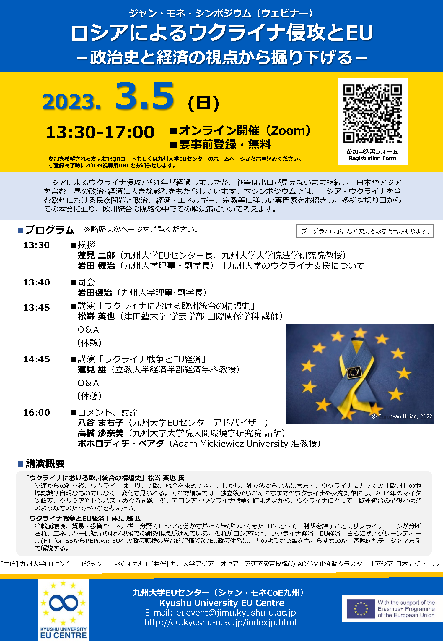 ジャン・モネ・シンポジウム(ウェビナー) 『ロシアによるウクライナ侵攻とEU-政治史と経済の視点から掘り下げる-』
