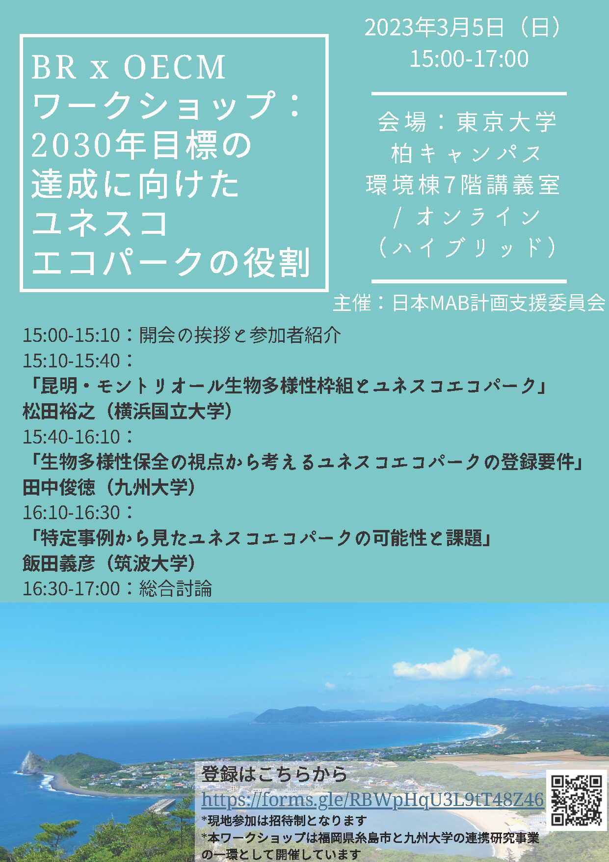 2023年3月5日(日)、田中准教授がユネスコエコパーク×OECMワークショップ(於東京大学)に登壇します。
