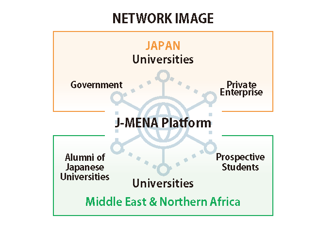 九州大学が2018年度に採択された文部科学省の委託事業「日本留学海外拠点連携推進事業(中東・北アフリカ拠点、通称:J-MENA)」は、中東・北アフリカ地域から優秀な外国人留学を獲得するため、国内外の関係機関との協働を通じて、留学生のリクルーティングから帰国後のフォローアップまでの日本留学のサポート体制を構築し、当該地域から日本への留学生数を倍増させることを目標としています。
